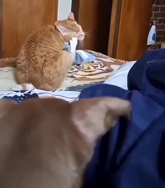 Один мужчина снял котика с камня на берегу моря, после чего передал пушистого его маме. Но она была не в восторге от действий малого, после чего решила провести "урок воспитания".