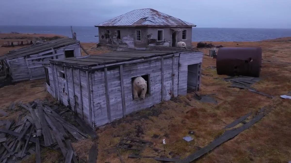 Белые медведи уже несколько лет наслаждаются уютом и покоем давно оставленных человеком домов на острове Колючин. Остров этот находится в Чукотском море. Полярная станция начала на нём работать ещё в 1934 году, а в 1990 году люди отсюда ушли, но вскоре тут послелились новые хозяева, которые тут живут и до сих пор.