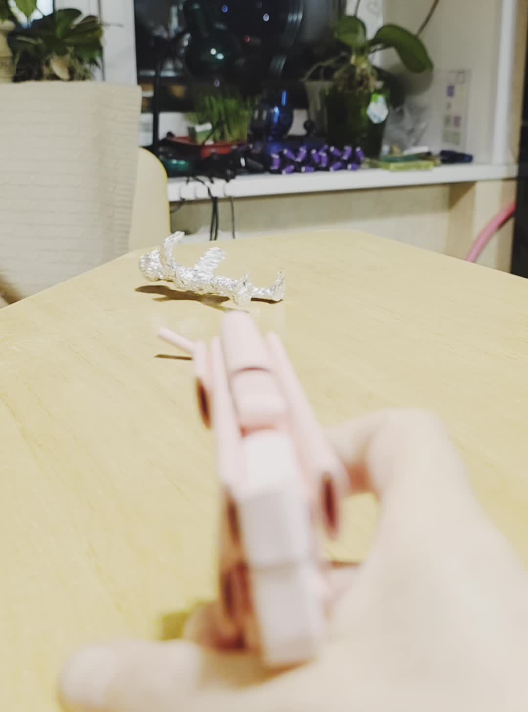 Собственно, какой-то час, и прекрасный розовый пистолет готов. Испытания буду проводить на зомби-манекене из фольги