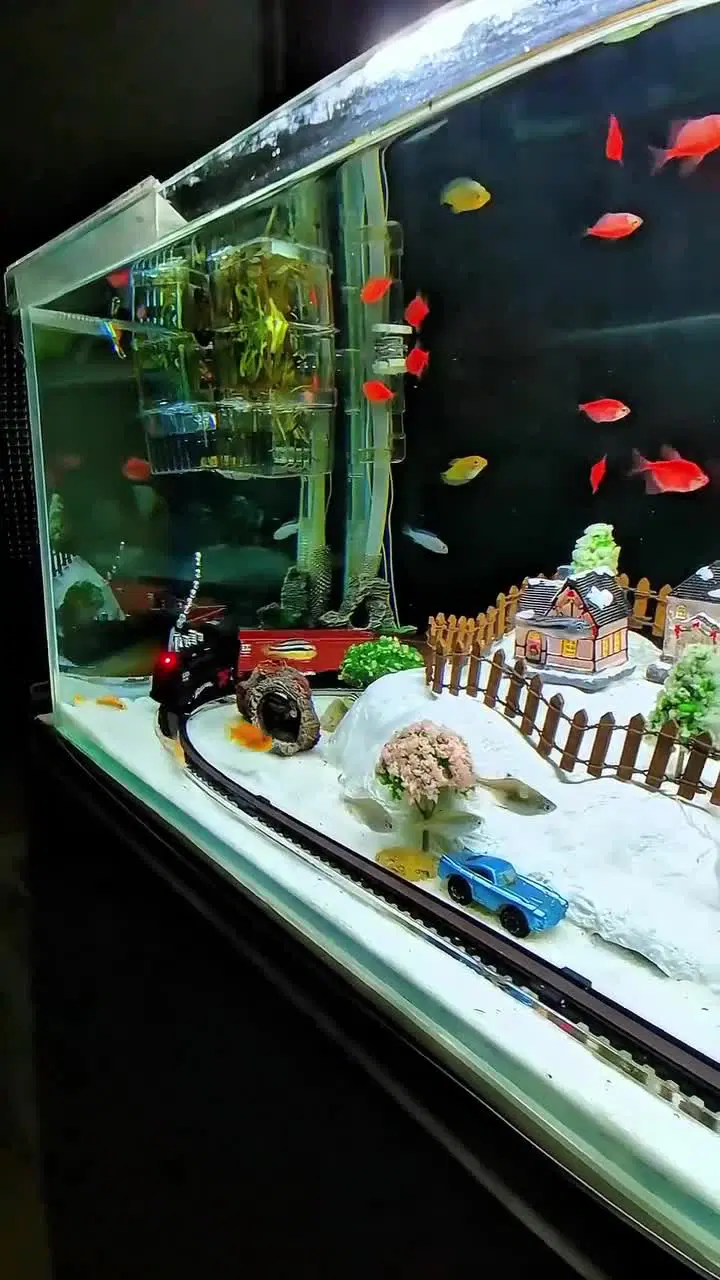 Китайский мастер придумал классный вариант украсить аквариум, а заодно развлечь его обитателей.