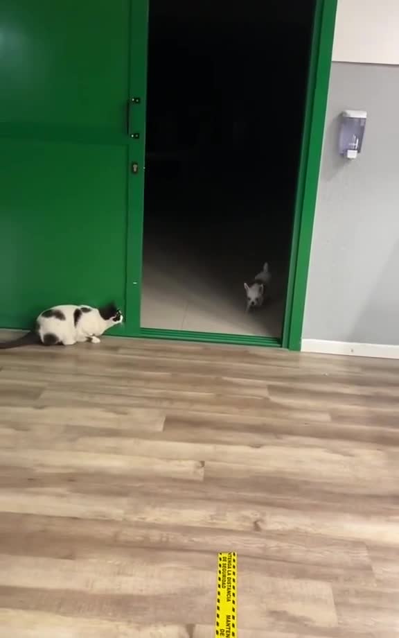 Пёс мирно отдыхал в домике с лежанкой, как вдруг появился кот. Пушистый решил выгнать жильца и прыгнул на домик. Пес, конечно, не ожидал такого развития событий и, испугавшись, быстро выскочил из домика. Котик, довольный собой, занял освободившееся место.