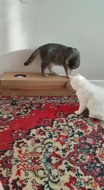 Декабрь 2022. Ни один кот не пострадал ;) А вот коробке не повезло..