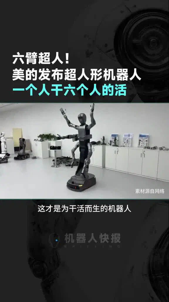 Вместо ног колёса. Крутится на 360 градусов, имеет 3 пары рук-манипуляторов, могёт выполнять три задачи одновременно (ну у него же три пары рук). Разраб - производитель бытовой техники Midea Group. Сделали они его для оптимизации собственного производства в первую очередь в качестве замены рабочей силы.