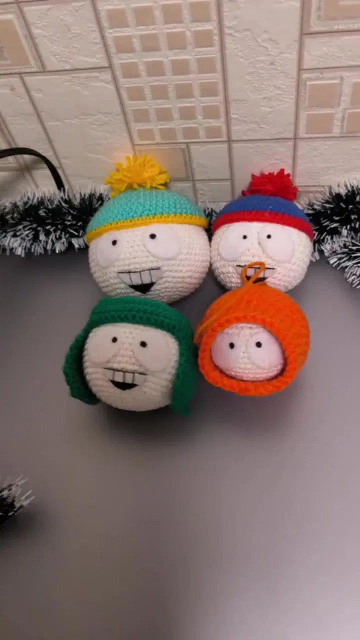 Посмотрите, какие я игрушки на ёлку связала. Угадаете, кто это?