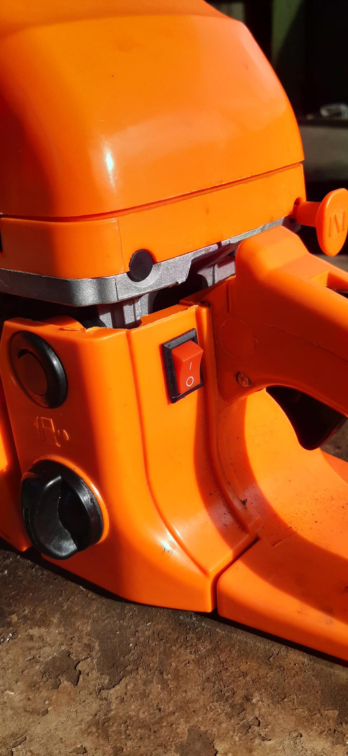 После штатной обкатки пила отказалась выключаться. Тщательно заглянув во все щели, выяснил, что с кнопки питания слетела! Мать его! Клемма! Пипец. Это ж надо полпилы разобрать, чтоб добраться до проводов. Охладив зад в ещё нерастаявшем снегу, решил присмотреться внимательней. Таки да! Кнопку можно извлечь из корпуса отвёрткой!