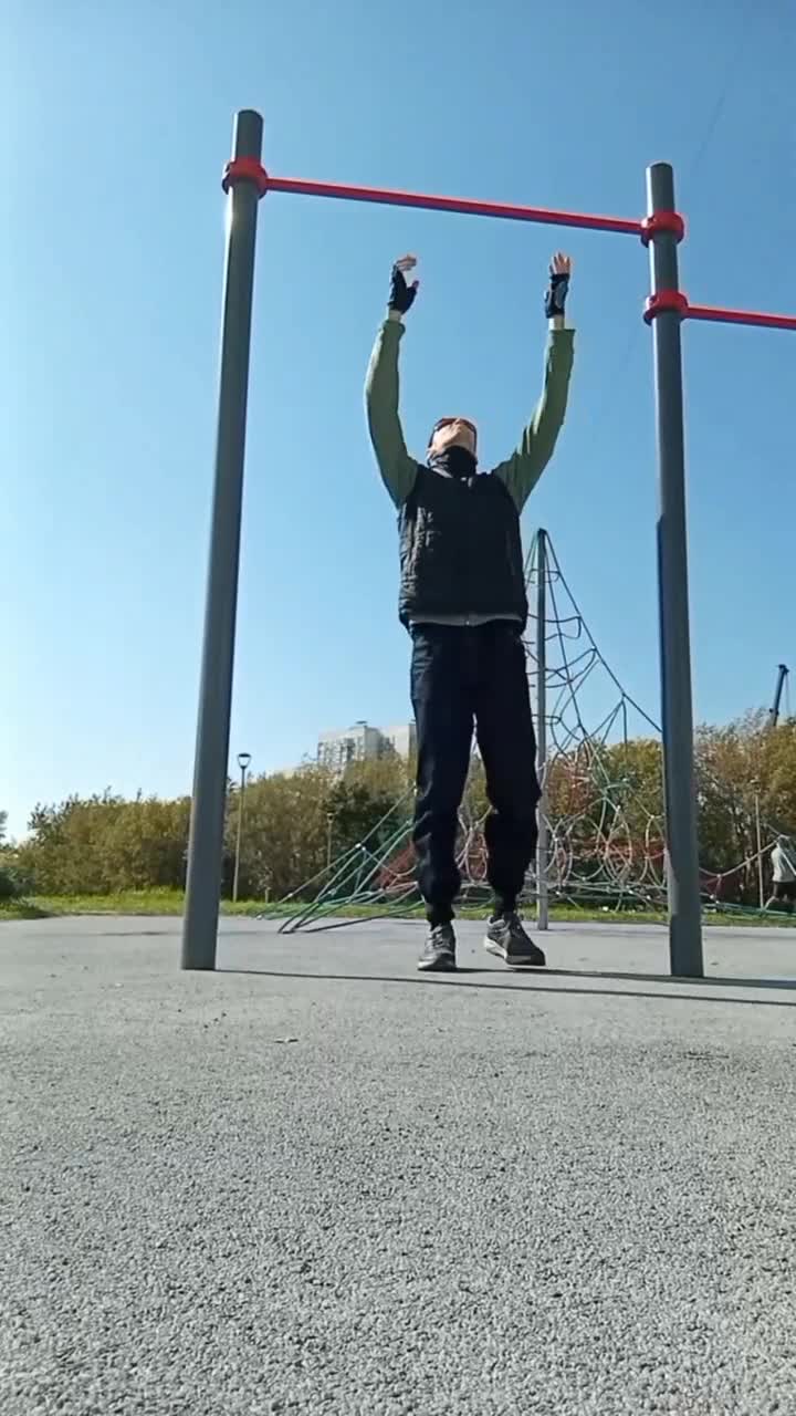Для них потребуется специальный турник с двумя параллельными трубками. Часто такие попадаются на детских площадках. На одной из таких площадок я и снимал следующий видос, предварительно разогнав оттуда всех детей.