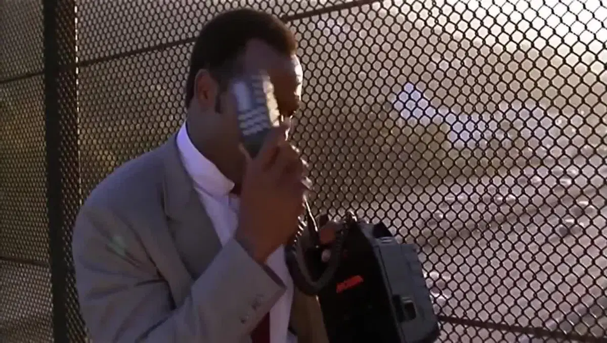 Как вам мобильник Денни Гловера? Это Nokia Mobira Talkman.